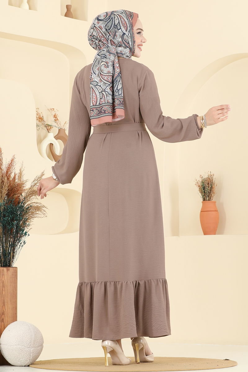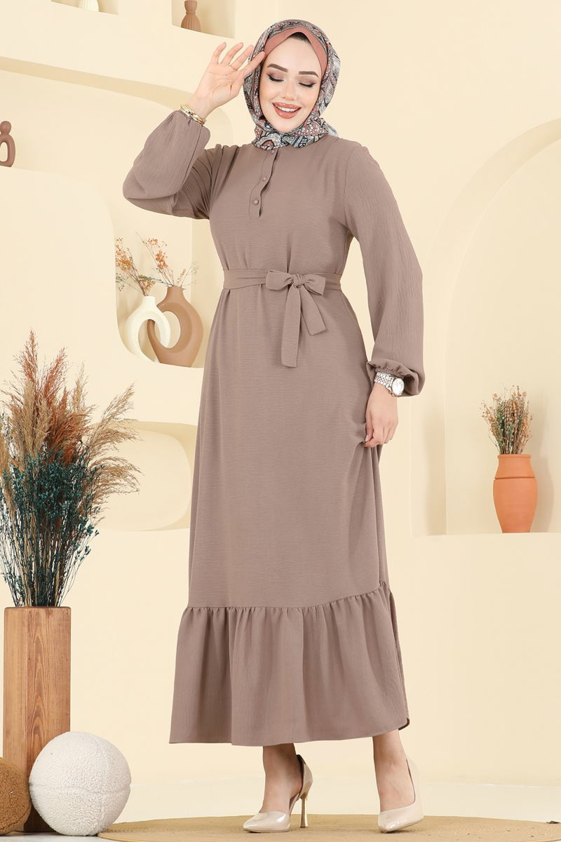 Elegantly designed, the Front Half-Buttoned Dress can be comfortably worn across all seasons. Made from Aerobin fabric, this modest wear garment can be washed gently at 30 degrees. It features a bicycle neckline and elastic cuffed sleeves that offer a sophisticated look. The half-buttoned front design allows for practical usage. With its unlined structure, it provides a lightweight and comfortable experience, making it perfect for maintaining your elegance in any setting.