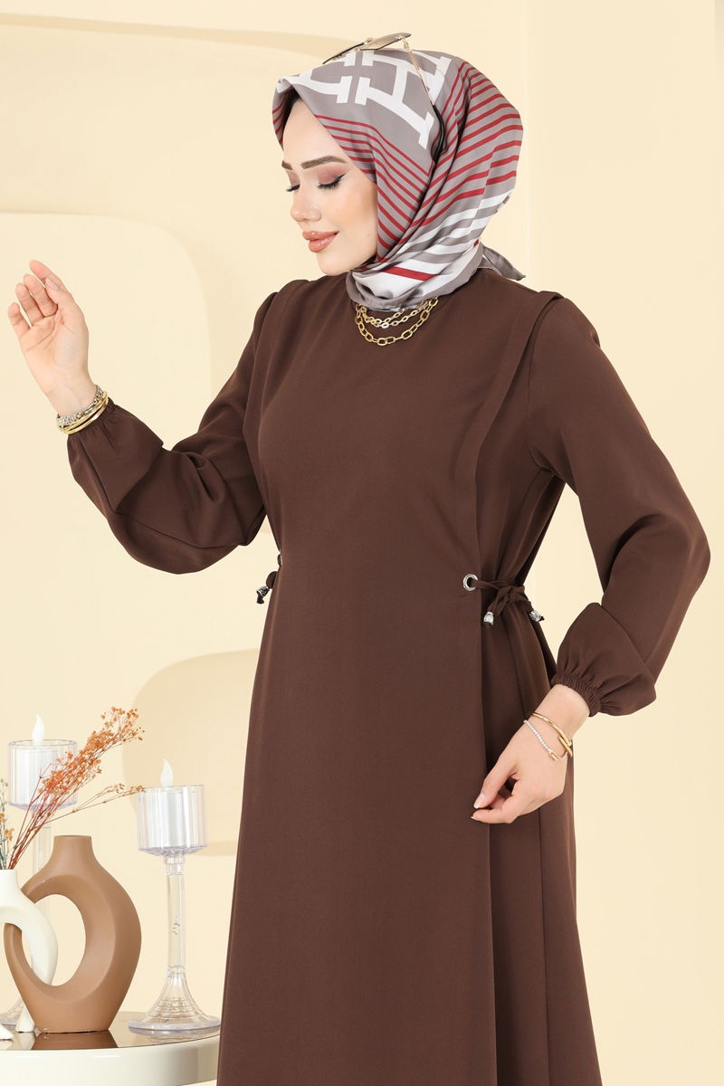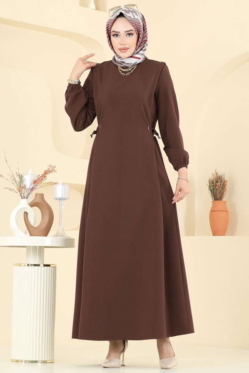 The Drawstring Waist Dabil Dress is designed to capture elegance for your special occasions. Suitable for all seasons, this dress is made from Dabil fabric, which is breathable even on warm days and offers long-lasting use with its delicate washing feature. The bike neck design and lining-free structure prioritize comfort. Its drawstring waist adjusts to different body types, enhancing appearance while its elastic waist and cuffs promise both style and practicality.