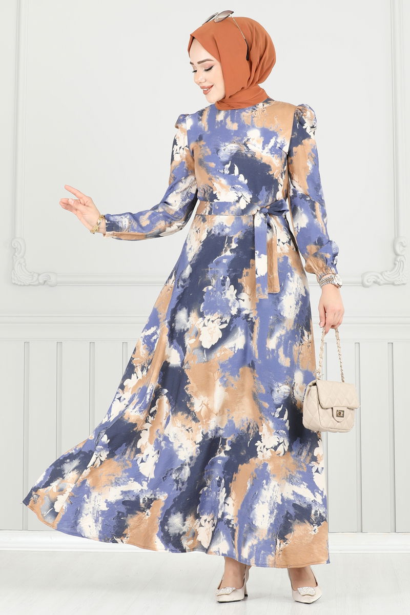 The Patterned Dress with Elastic Cuffs is a modest wear suitable for all seasons. Made from modal fabric, this dress features a crew neck and an unlined design that offers comfort. Its back zipper makes it easy to wear, while the special belt design prevents waviness and can be optionally removed. It is an ideal choice for those seeking both style and practicality. The dress can be washed gently at 30 degrees Celsius.