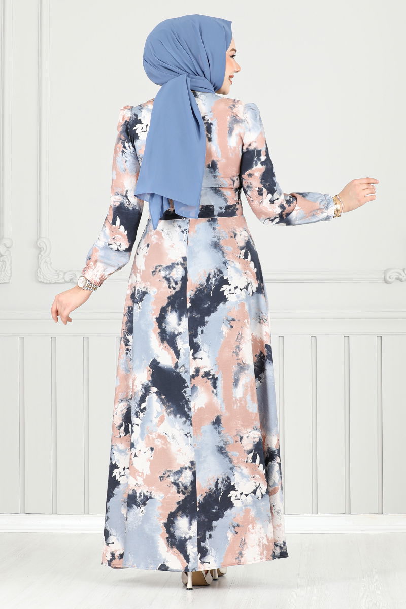 This elegant elastic-cuffed dress is an excellent choice for women who embrace modern modest fashion. Suitable for all seasons, this dress is made from modal fabric, offering a gentle touch to the skin. It features a crew neckline, an unlined design, and a back zipper, providing both style and practicality. The belt detail accentuates the waist, enhancing a feminine silhouette. The belt is designed to maintain its shape with stitched ends, while the middle is left unstitch for comfort. The belt is coordinated with the dress and can be optionally removed. The dress can be washed at 30 degrees on a delicate cycle, making it ideal for long-term use.