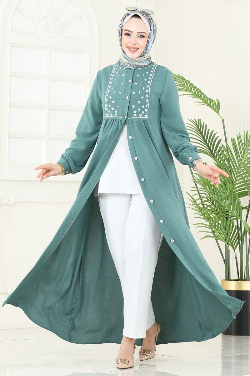 Product Feature : It is a new season hijab fashion product. The product has a Cycling collar. The product has From the front buttons. Unlined. Embroidery details are sewn. Cuff buttons are active. There may be a tonal difference in the product due to concept photo shoots.