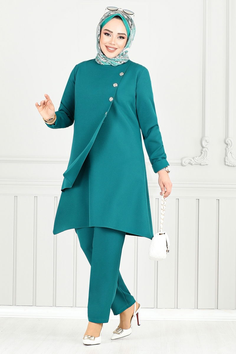 Düğme Detay İkili Takım 23012UKB929-M Petrol