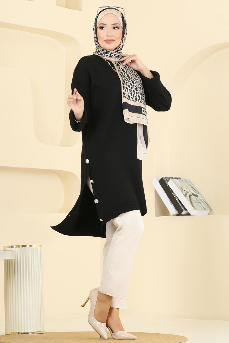 Düğme Detay Yırtmaçlı Tunik 2716AYD574-MS Siyah