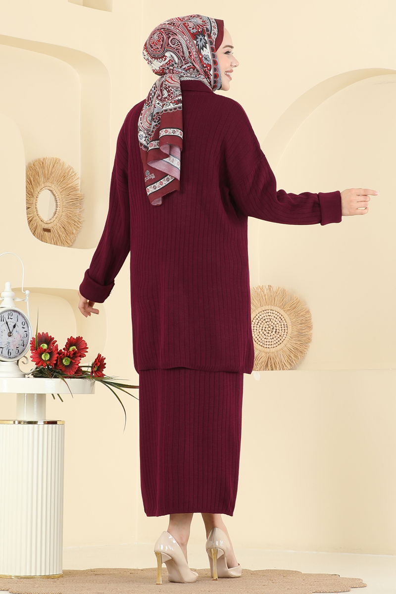 Düğme Detaylı Etekli Takım 2756AYD574-MS Bordo