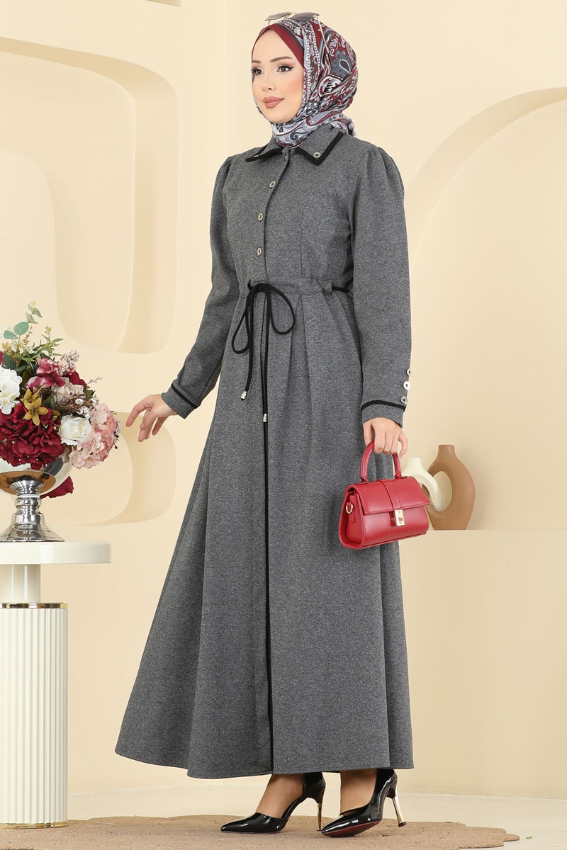 Düğme Detaylı Tivit Ferace PL9183-MS Antrasit
