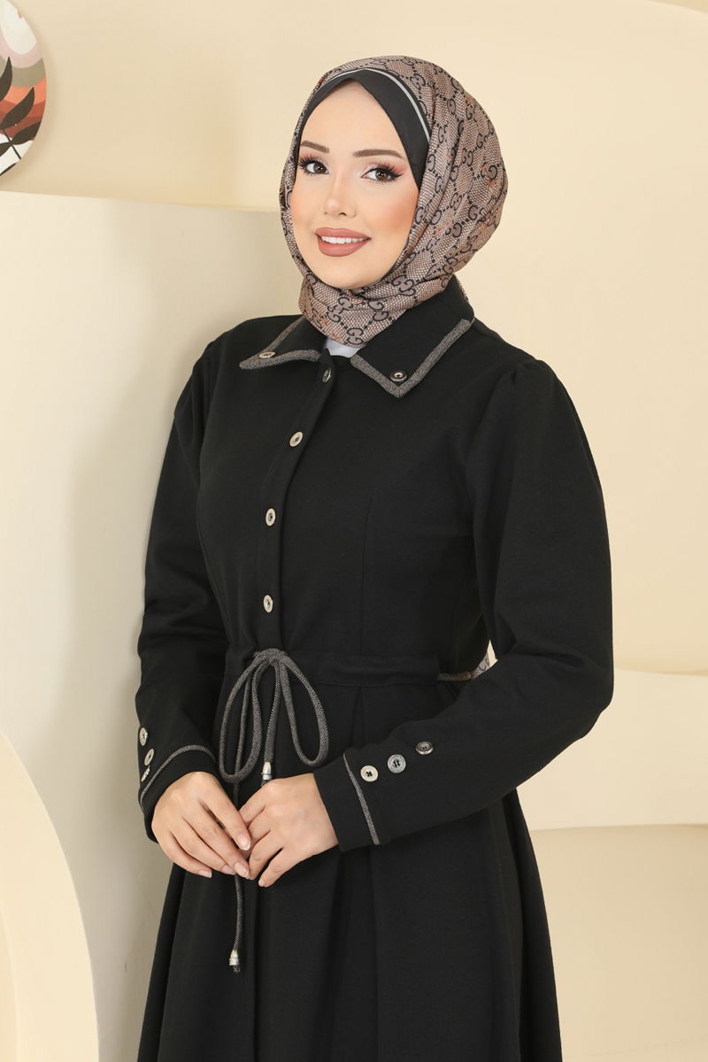 Düğme Detaylı Tivit Ferace PL9183-MS Siyah