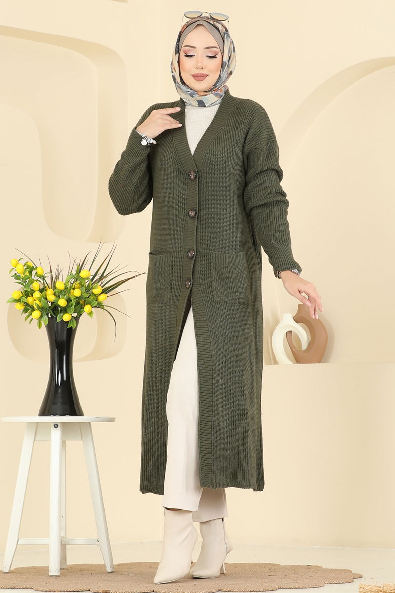 Düğme Detaylı Triko Hırka 2892BRZ597-MS Haki