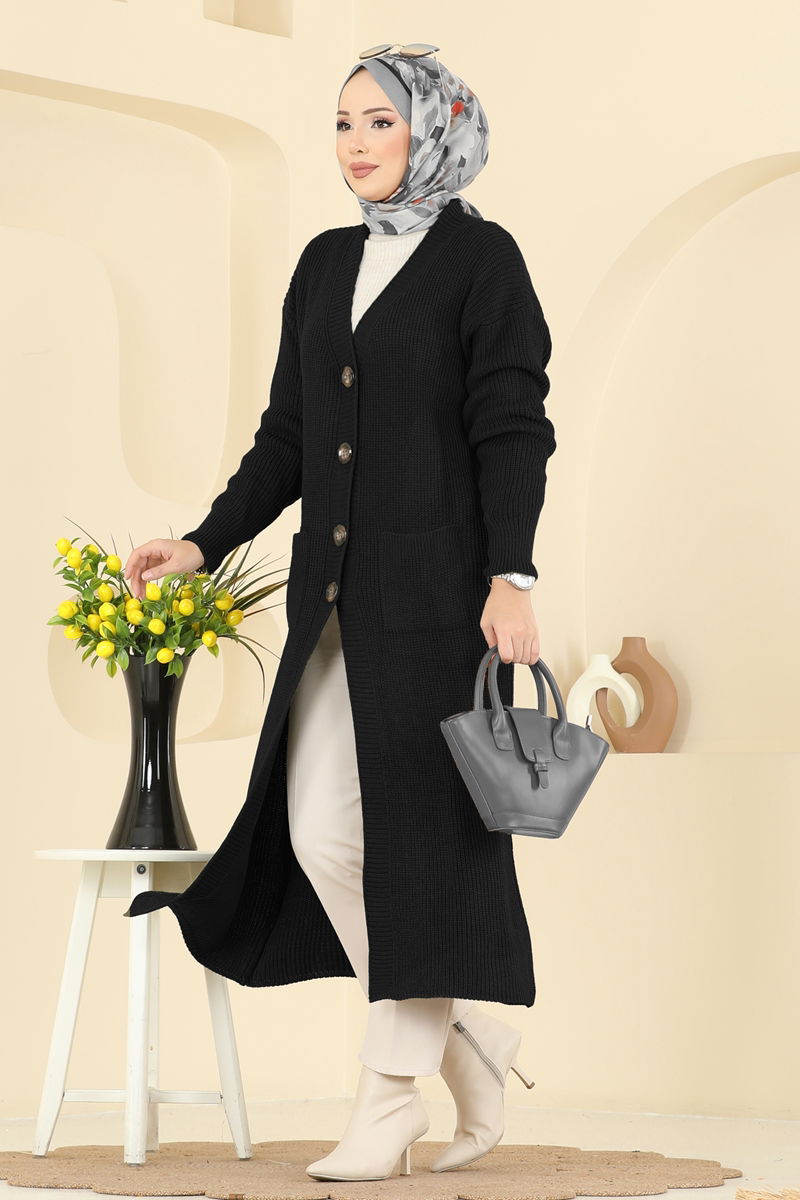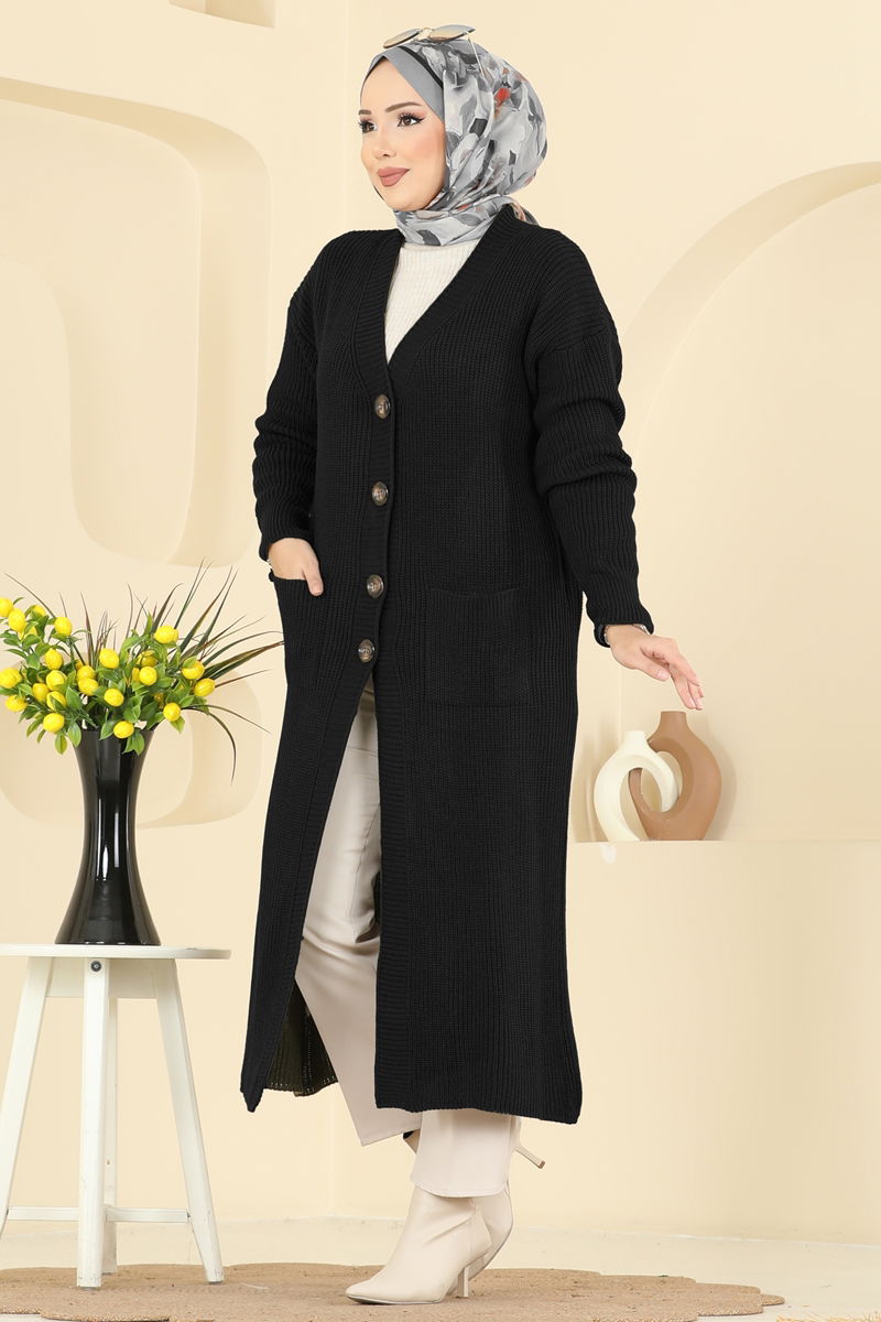 Düğme Detaylı Triko Hırka 2892BRZ597-MS Siyah