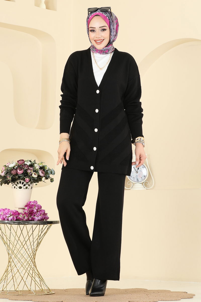 Düğme Detaylı Triko Takım 1314MT581-MS Siyah