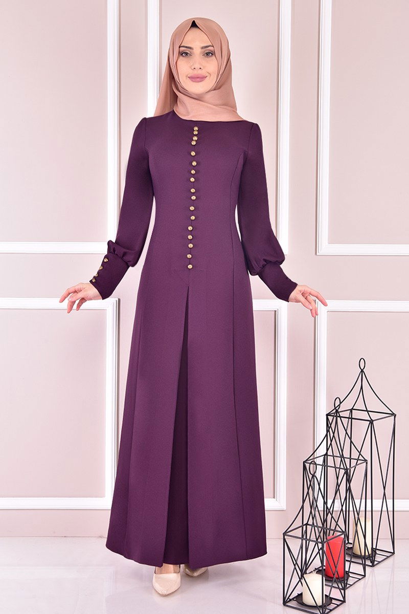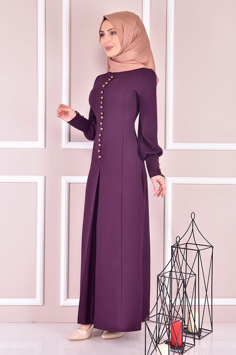 Düğmeli Elbise Mürdüm ASM21510