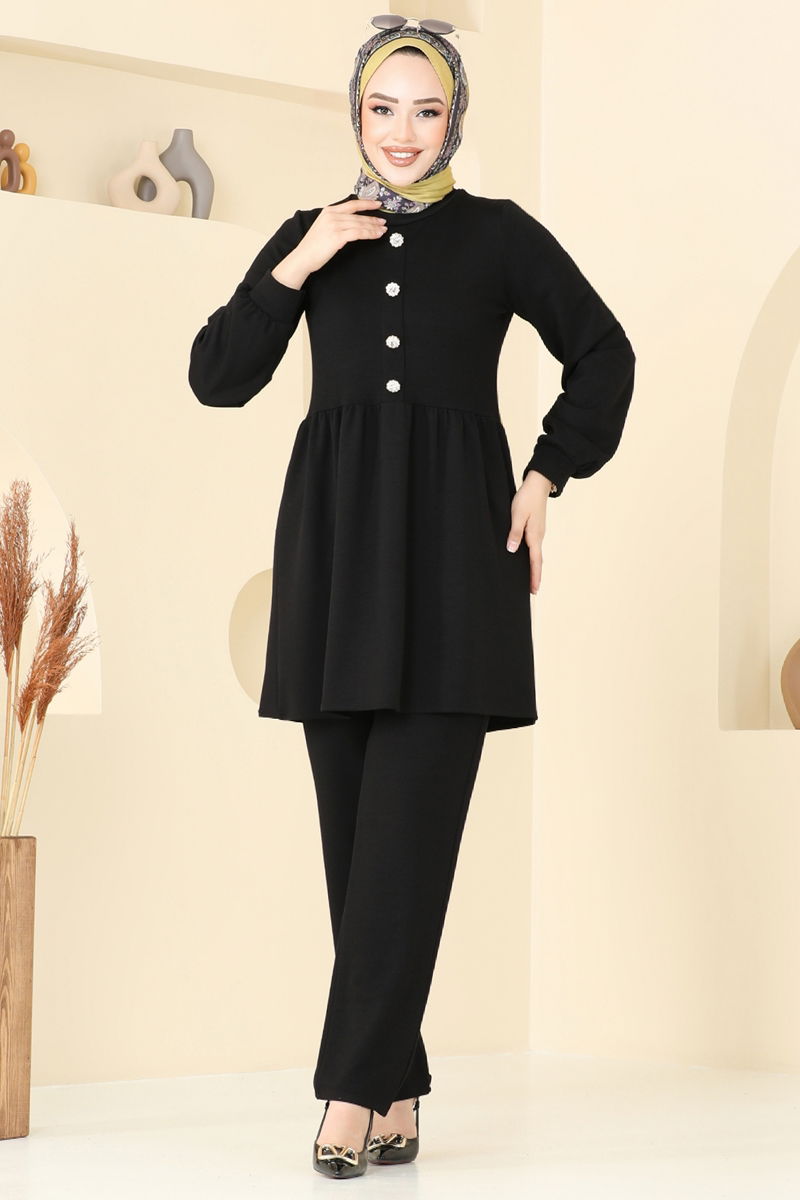 Düğmesi Taşlı Modal Takım 5702ZNK1009-MS Siyah