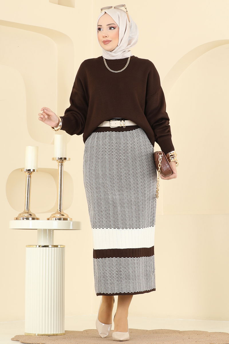 Eteği Desenli Triko Takım 2360KLB1050-MS Kahve