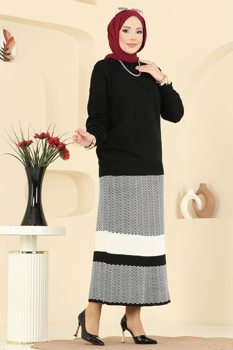 Eteği Desenli Triko Takım 2360KLB1050-MS Siyah