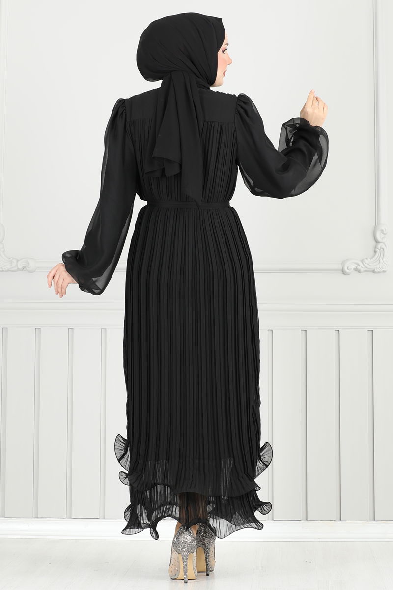 Eteği Katlı Janjan Abiye 5689EDF311-MS Siyah