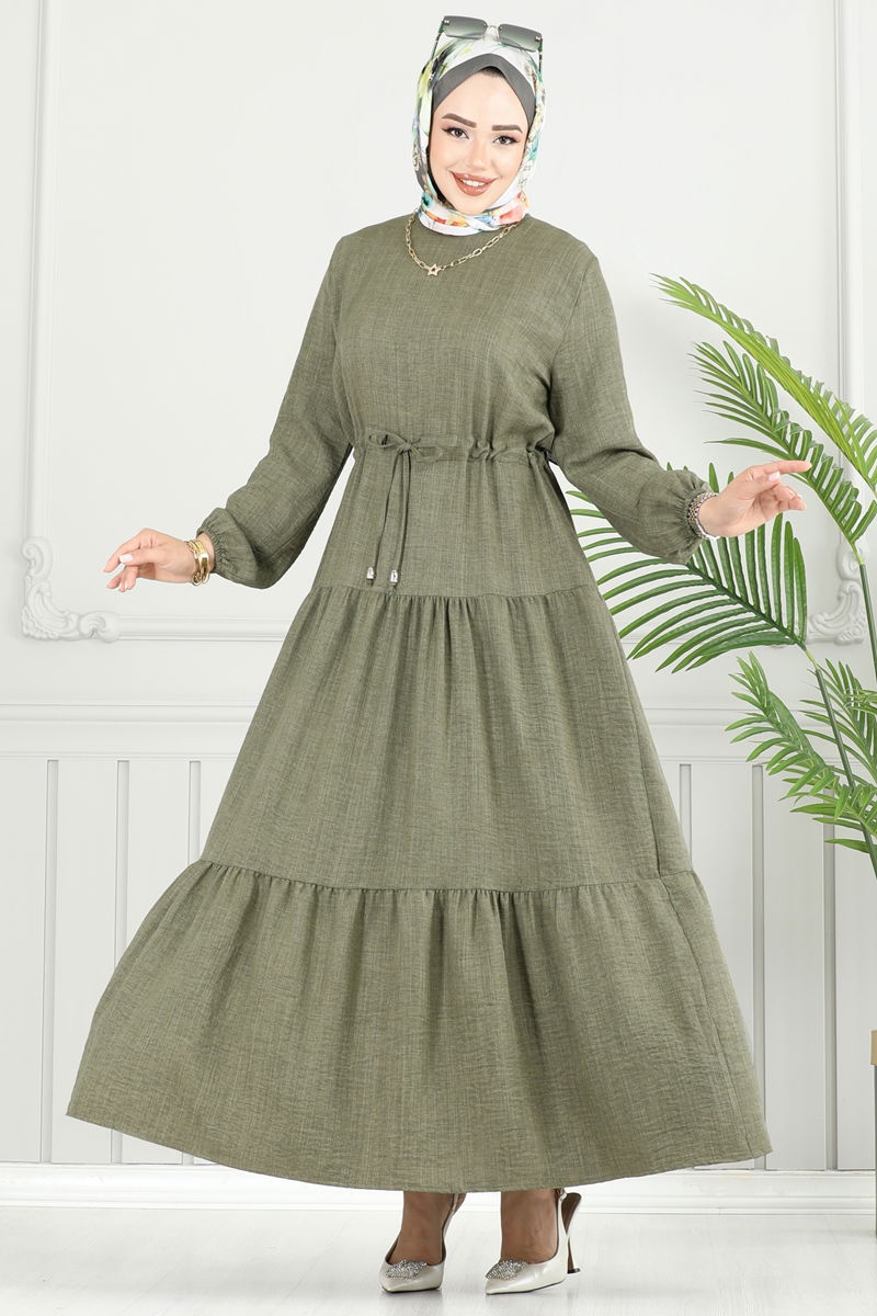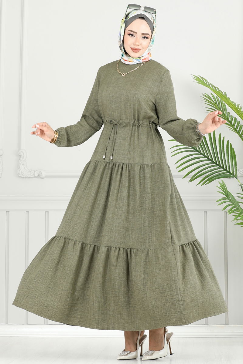 Eteği Katlı Sofia Elbise 025MR1078-MS Haki