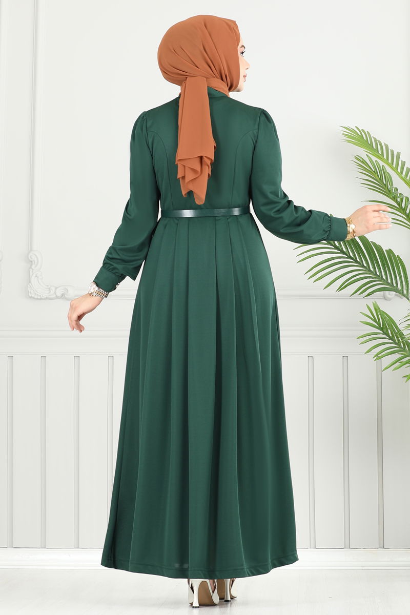 Eteği Pileli Dabıl Elbise 431DVL817-MS Zümrüt