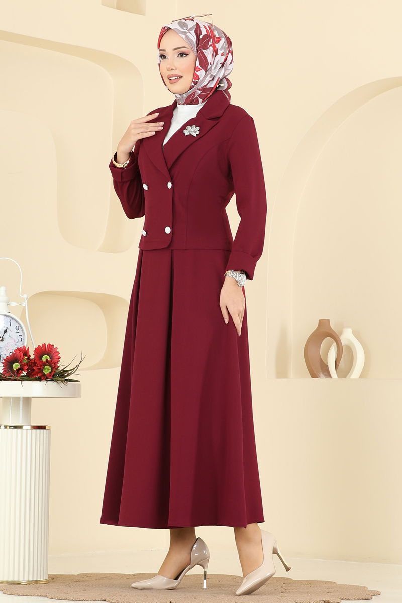 Eteği Piliseli Ceketli Takım 2775SL432-MS Bordo