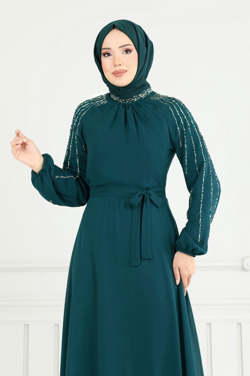 Product Feature : It is a new season hijab fashion product. The product has a Half Judge collar. It is lined. The product has a zipper at the from the back part. The stones are glued. Belt included, optional not available. The cuff is rubberized. There may be a tonal difference in the product due to concept photo shoots.