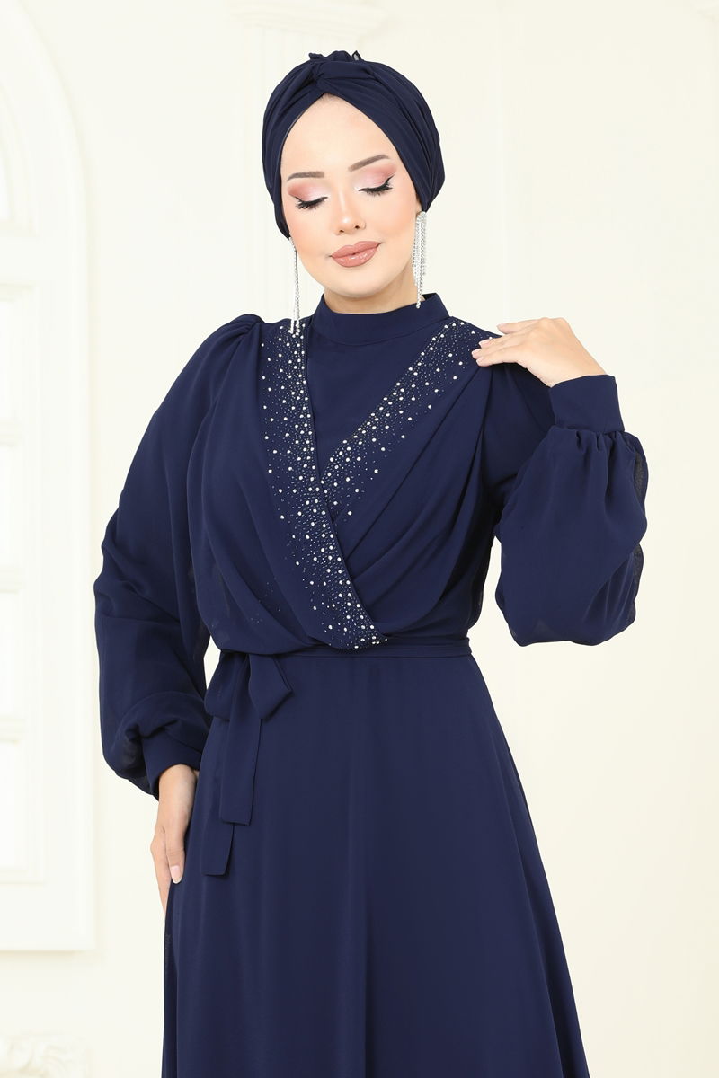 Product Feature : It is a new season hijab fashion product. It has a button that can be used from the back. The product has a Half Judge collar. It is lined. The product has a zipper at the from the back part. The stones are glued. Belt included, optional not available. There may be a tonal difference in the product due to concept photo shoots.