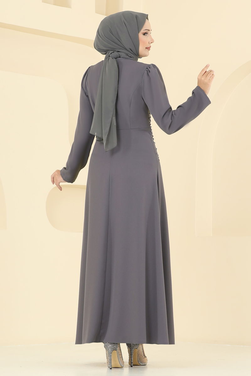 The Beaded Crepe Evening Dress stands out with its elegant design. This modest evening dress can comfortably be worn in all seasons. Ideal for your special occasions, this dress should only be dry cleaned. It features a crew neck design and is unlined for comfort. The back zipper makes it easy to wear, while the striking bead details provide a visual feast.