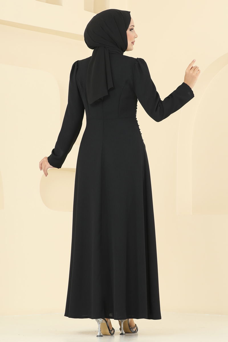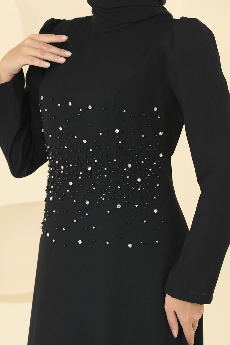The Beaded Crepe Evening Dress stands out with its elegant design. This modest evening dress can comfortably be worn in all seasons. Ideal for your special occasions, this dress should only be dry cleaned. It features a crew neck design and is unlined for comfort. The back zipper makes it easy to wear, while the striking bead details provide a visual feast.