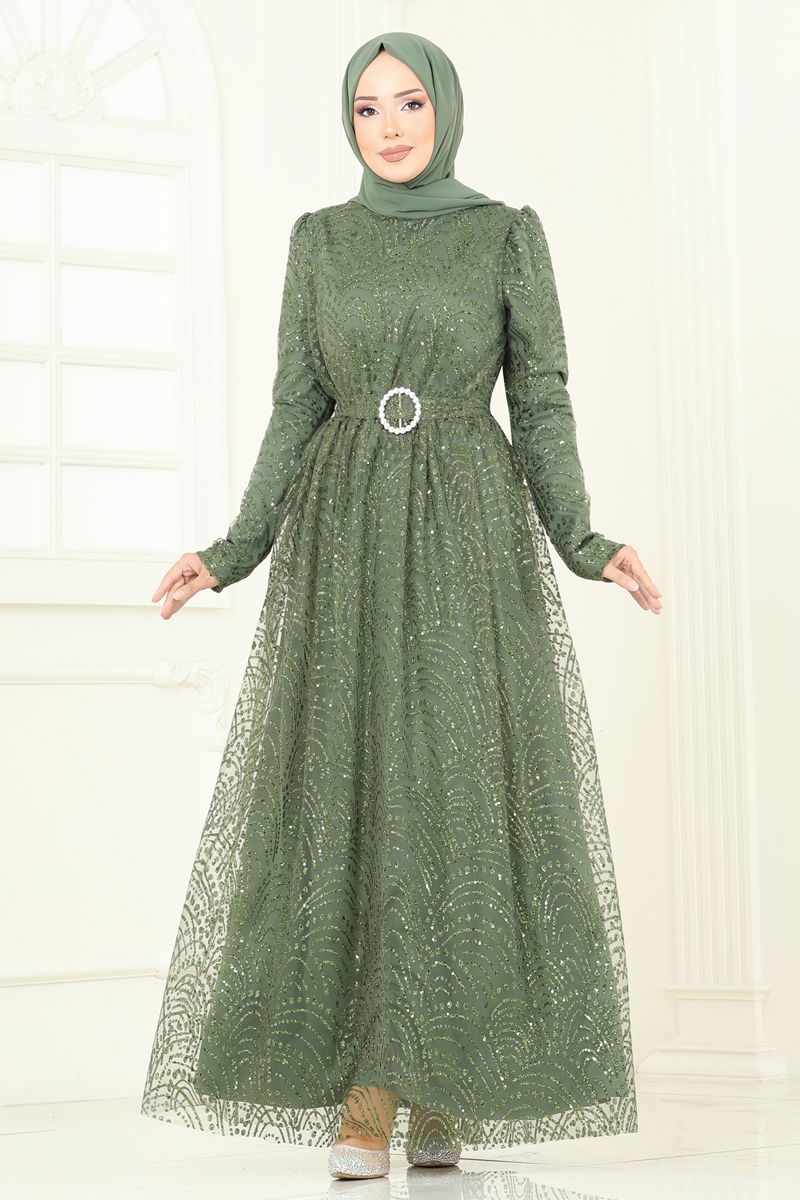 Product Feature : It is a new season hijab fashion product. The product has a Half Judge collar. It is lined. The fabric consists of dense glitter. Excess glitter may spill. Belt included, optional not available. There may be a tonal difference in the product due to concept photo shoots.