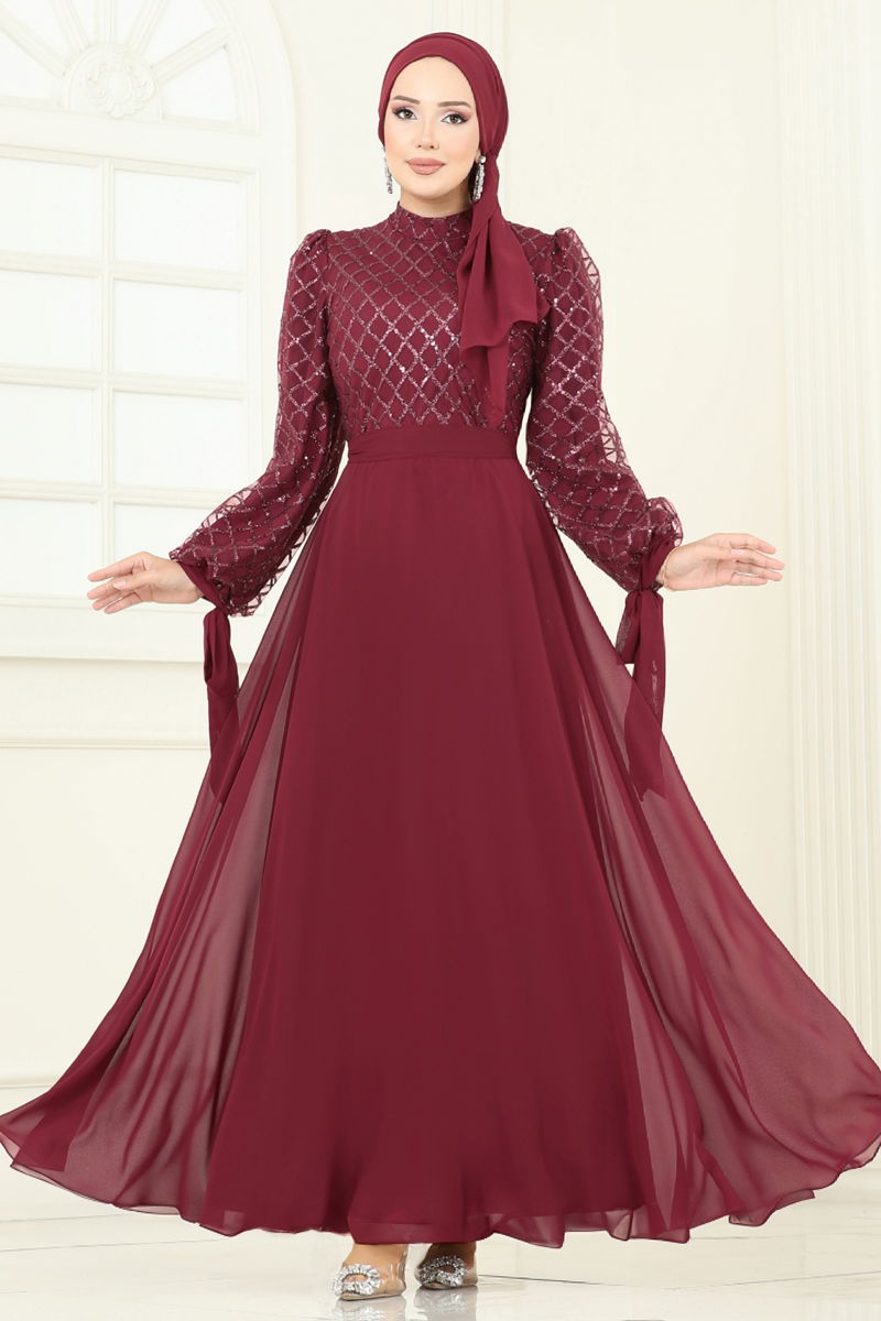 Product Feature : It is a new season hijab fashion product. The product has a Judge collar. It is lined. The product has a zipper at the from the back part. The product has a stitched waistband. The fabric consists of dense glitter. Excess glitter may spill. Belt included, optional not available. The cuff is laced. There may be a tonal difference in the product due to concept photo shoots.