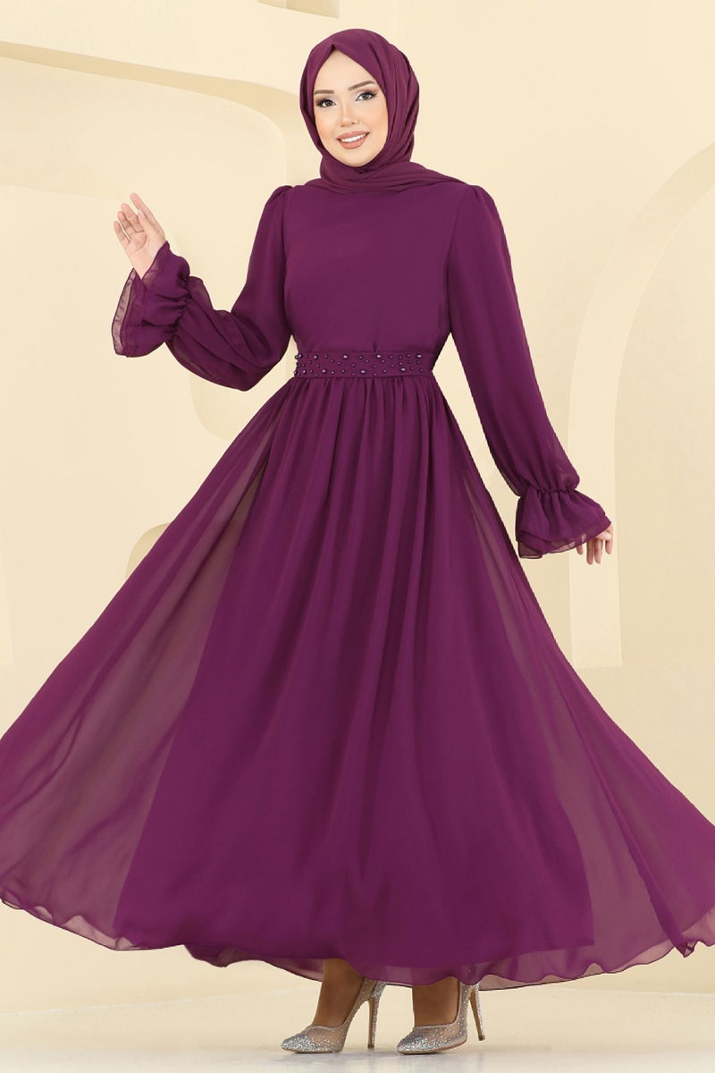 Product Feature : It is a new season hijab fashion product. It is lined. The product has a zipper at the from the back part. The product has a stitched waistband. Belt included, optional not available. Bead details are sewn. The cuff is rubberized. There may be a tonal difference in the product due to concept photo shoots.