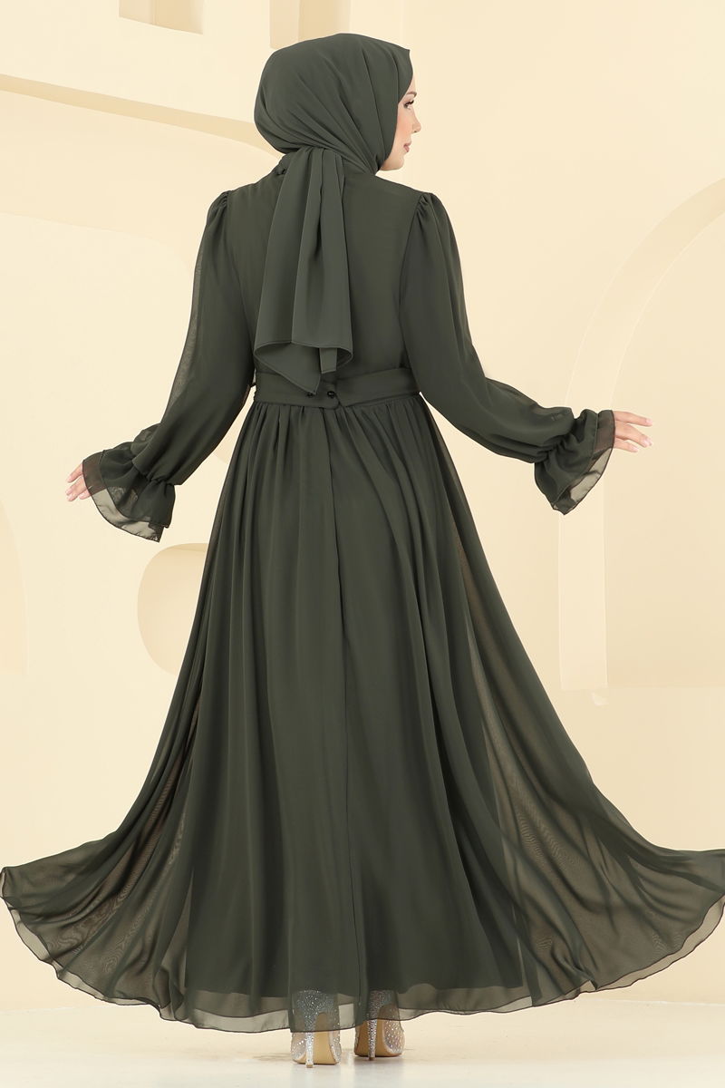 Product Feature : It is a new season hijab fashion product. It is lined. The product has a zipper at the from the back part. The product has a stitched waistband. Belt included, optional not available. Bead details are sewn. The cuff is rubberized. There may be a tonal difference in the product due to concept photo shoots.