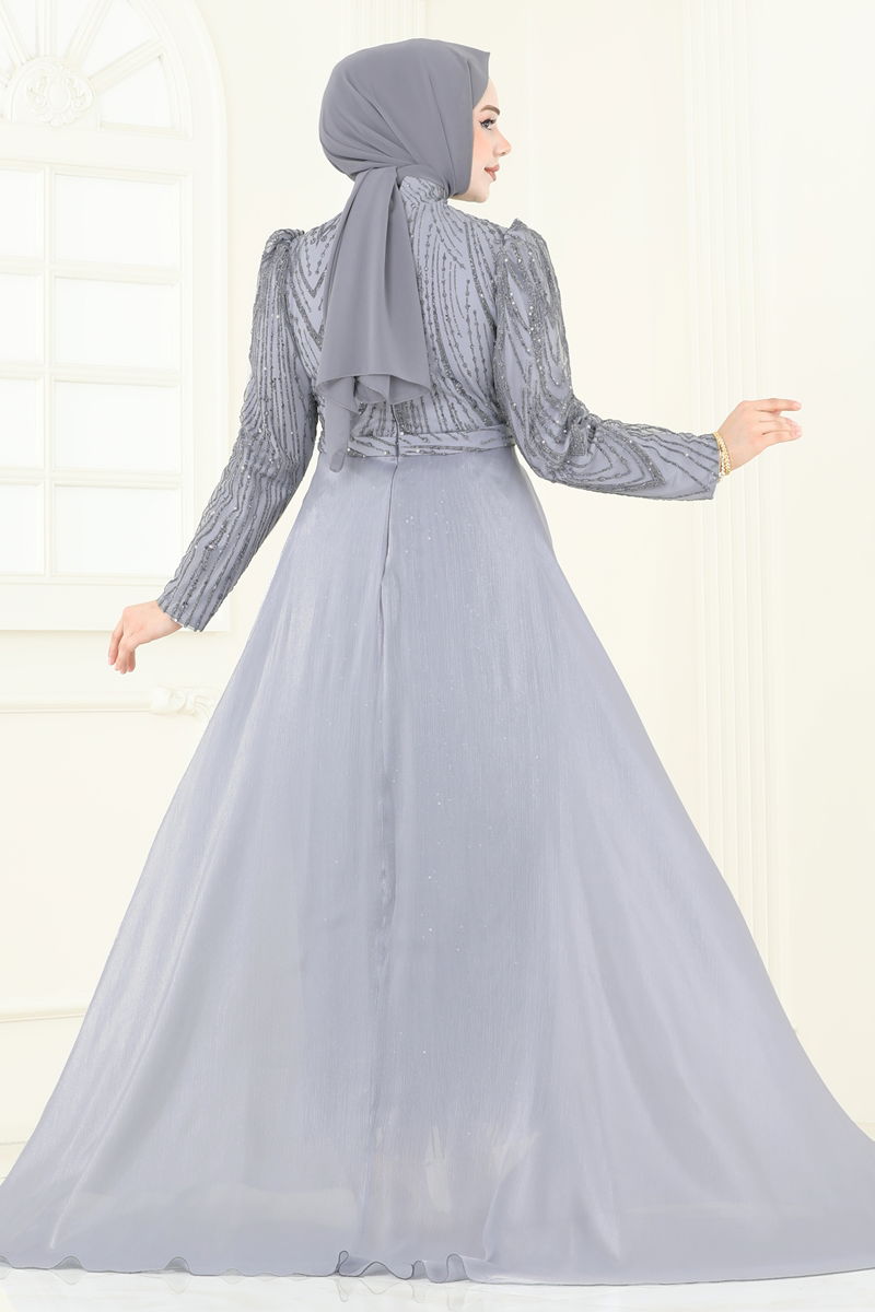 Elevate your elegance with the Cape-Detailed Glittery Evening Dress, suitable for wear in all four seasons. This modest dress is made from glittery tulle fabric and features a semi-mandarin collar and lining. The zippered back makes it easy to wear, and the chiffon cape detail offers a stunning look. Since the fabric is heavily glittered, shedding may occur; dry cleaning is recommended. The product model shown is a size 38.Evening Dress SIZE DIMENSIONS (CM)Size Chest Length 38 96 134 40 100 134 42 108 134 44 112 134 46 116 134 48 122 134 Weight (Kg):0.49 -