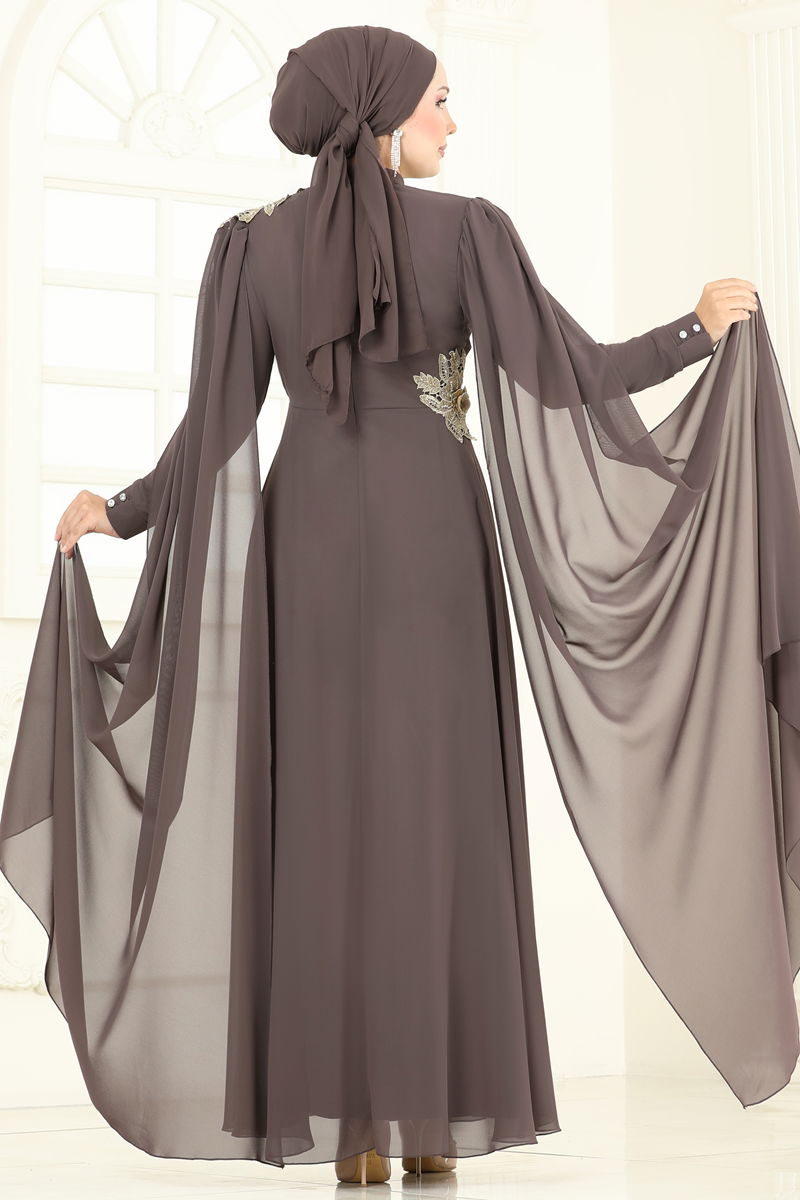 Product Feature : It is a new season hijab fashion product. The product has a Judge collar. It is lined. The product has a zipper at the from the back part. The guipure detail is sewn. Chiffon cape detail is sewn. The product has a stitched waistband. Cuff buttons are active. There may be a tonal difference in the product due to concept photo shoots.