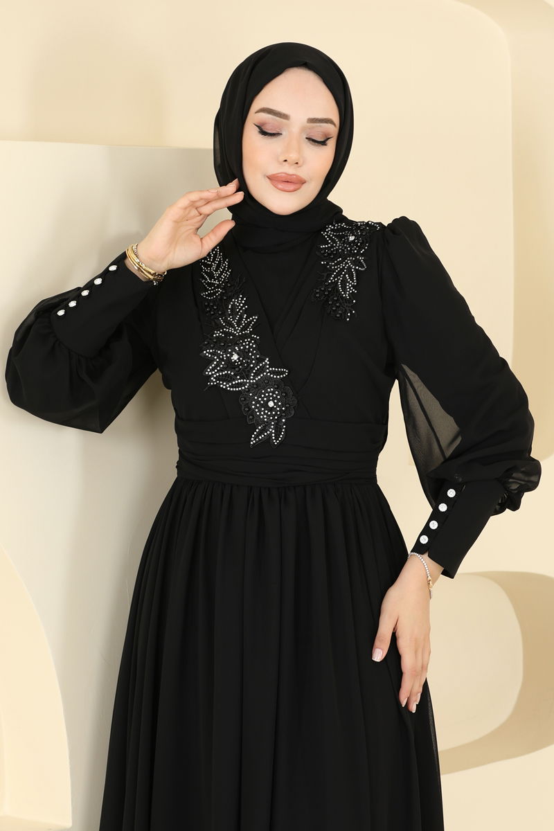 Product Feature : It is a new season hijab fashion product. The product has a Half Judge collar. It is lined. The product has a zipper at the from the back part. The gown is sewn and the stones are printed. Cuff buttons are active. There may be a tonal difference in the product due to concept photo shoots.