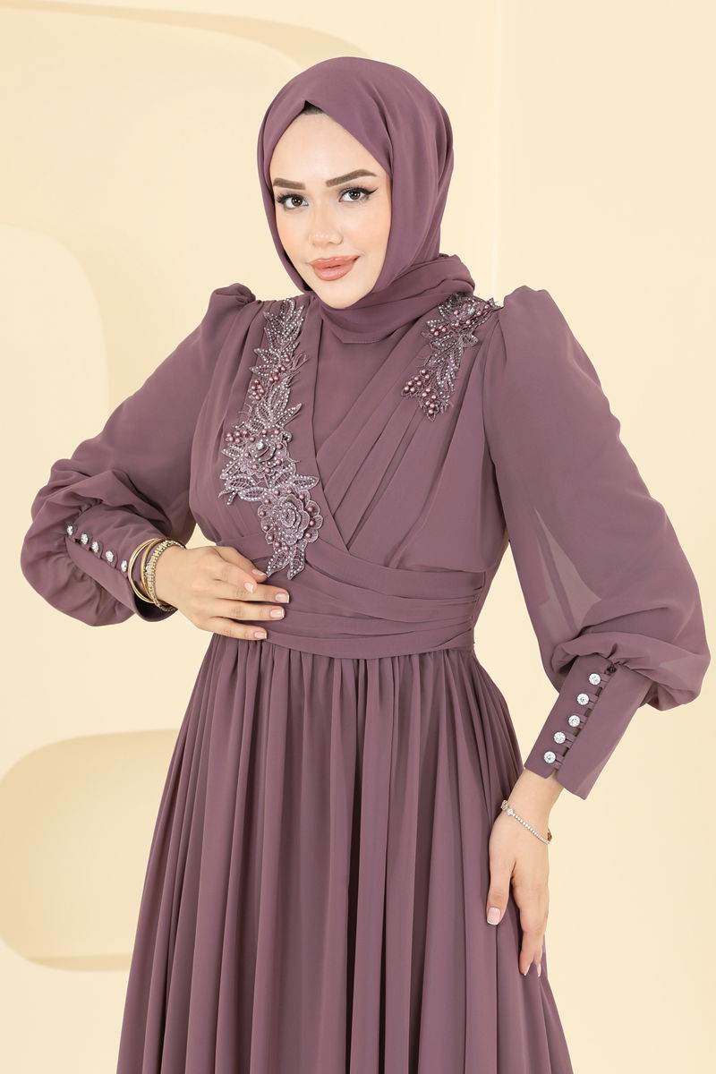 Product Feature : It is a new season hijab fashion product. The product has a Half Judge collar. It is lined. The product has a zipper at the from the back part. The gown is sewn and the stones are printed. Cuff buttons are active. There may be a tonal difference in the product due to concept photo shoots.