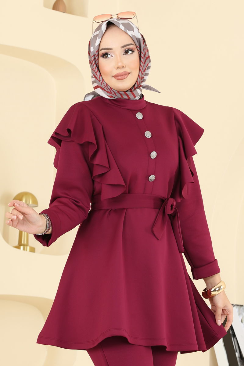 Fırfır Detaylı İkili Scuba Takım 6099TEG847-MS Bordo