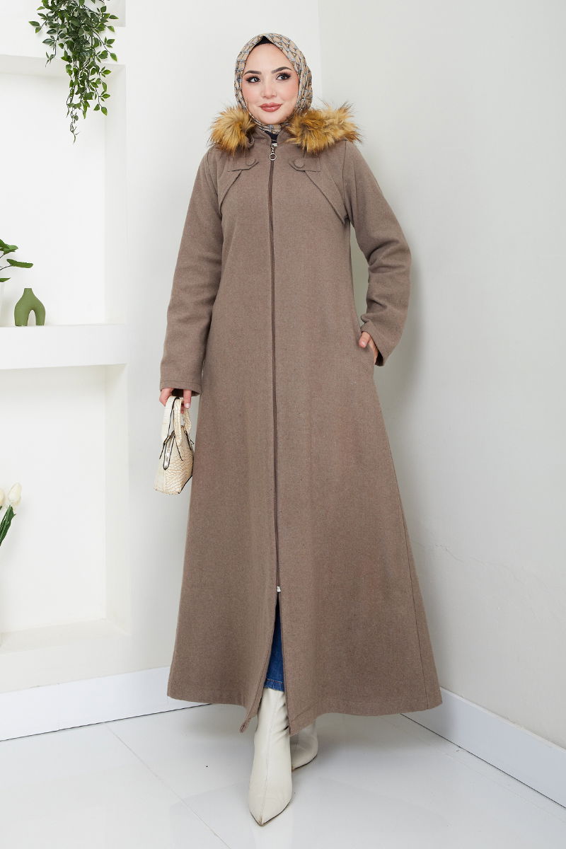 Front Zipper Cachet Coat VisionKumas Feature: It is made of cachet fabric. It can be used in Autumn and Winter season. Product Feature: New season hijab is a fashion product. The product is a Hooded collar. It is unlined. The product is zipped from the front. Fur is sewn to the product. The hood is included in the product, it may not be used on request. Pocket is available. There may be a tonal difference in the product due to concept photo shoots. Washing : IT CAN BE WASHED WITHOUT TIGHTENING AT 30 DEGREES.(DELICATE WASHING) (The product on the model is size 38.) The Cachet Coat with Front Zipper is a model hijab product. It can be used in Autumn and Winter season. IT CAN BE WASHED AT 30 DEGREES WITHOUT TIGHTENING.(PRECISION WASHING) It is made of cachet fabric. The product is a Hooded collar. It is unlined. The product is zipped from the front. (The item on the model is size 38.) The fur is sewn to the product. The hood is included in the product, it may not be used on request. Pocket is available.Weight (Kg):0.98