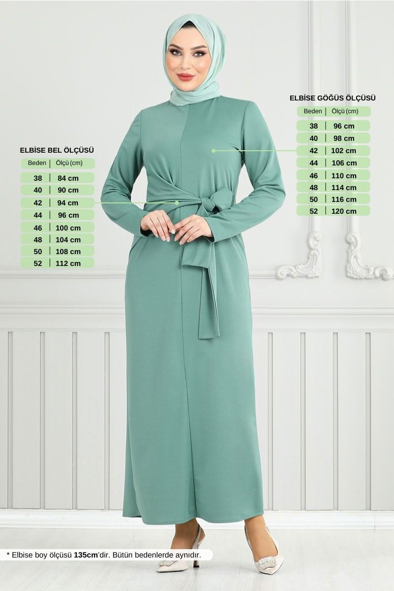 • Side Belt Detailed Dress Mintkuma Feature: It is made of Scuba Crepe fabric. It can be used in Four Seasonal seasons. Product Feature: New season hijab is a fashion product. There is a belt that can be attached from the side. The dress is worn from the head. The product is a Half-Judge collar. It is unlined. The product is zipped from the back. The belt is sewn to the product. There may be a tonal difference in the product due to concept photo shoots. Washing : IT CAN BE WASHED WITHOUT TIGHTENING AT 30 DEGREES.(DELICATE WASHING) (The product on the model is size 38.) With its elegant and modern design, it offers a combination of elegance and comfort in the Side Belt Detailed Dress, hijab clothing that you can choose from all seasons Decently. This dress, which can be washed at 30 degrees with its delicate structure and is made of scuba crepe fabric, attracts attention with its half-dominant collar and back zipper design. The side-binding belt detail allows you to customize your style. The dress, which offers a light and comfortable use thanks to its unlined structure, provides an eye-catching appearance in any environment.