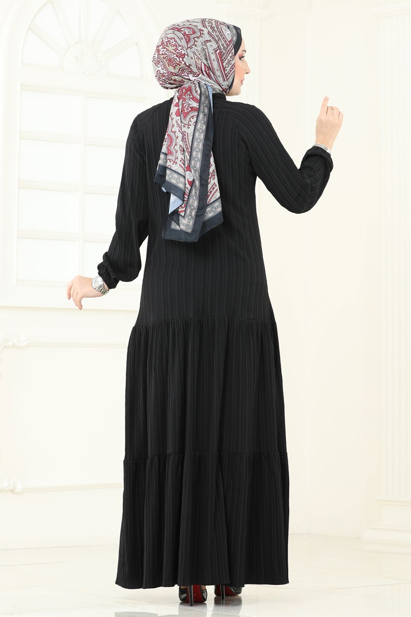 Fular Yakalı Tesettür Elbise 4076PM271-MS Siyah