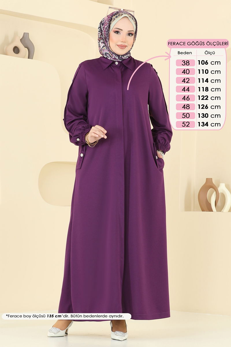 Gizli Düğmeli Tesettür Ferace 394DVL817-MS Mor