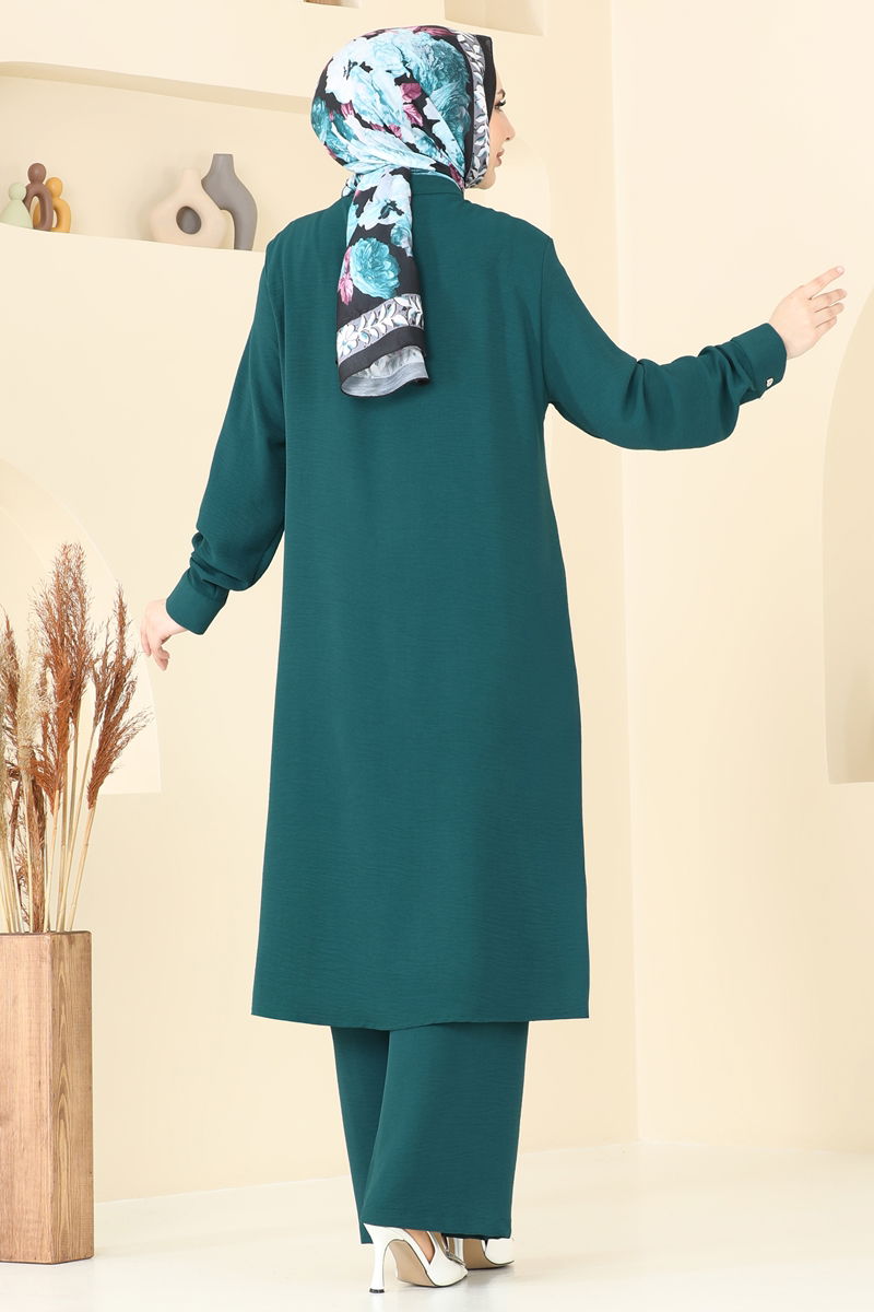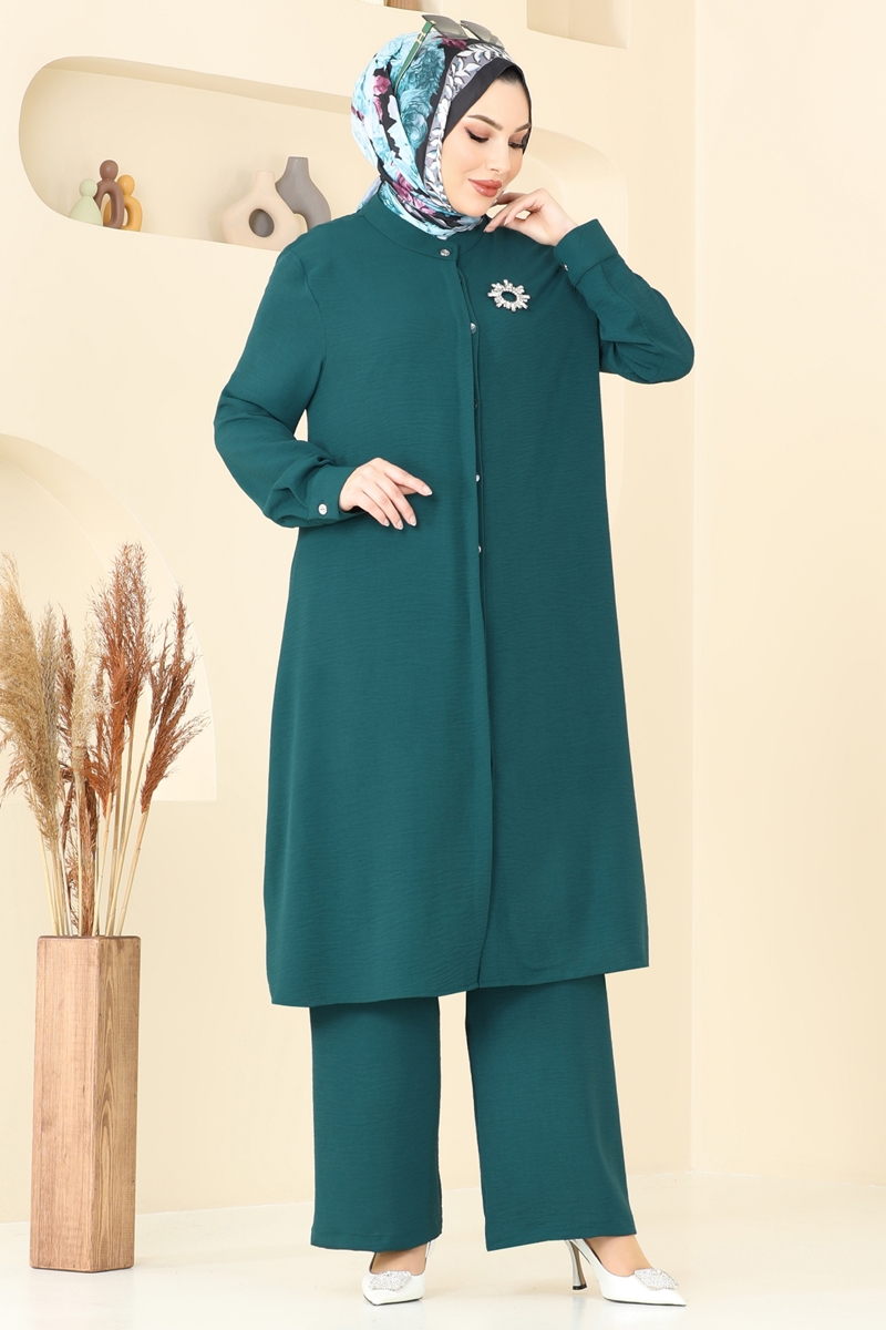 Gizli Düğmeli Tesettür Takım 1974TRT545-MS Petrol