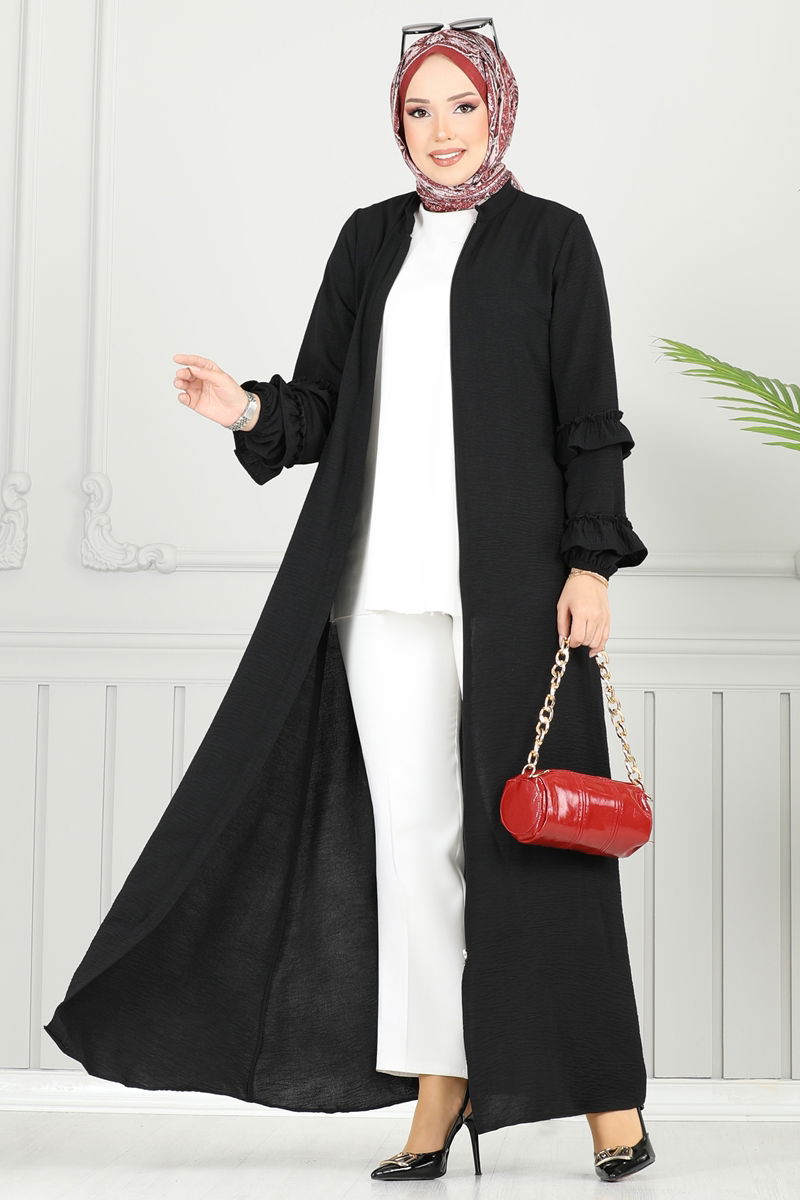Gizli Fermuarlı Pardesü Ferace 1205DLB1088-MS Siyah