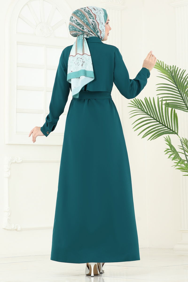 Gizli Fermuarlı Pardesü Ferace 23021UKB139-MS Petrol