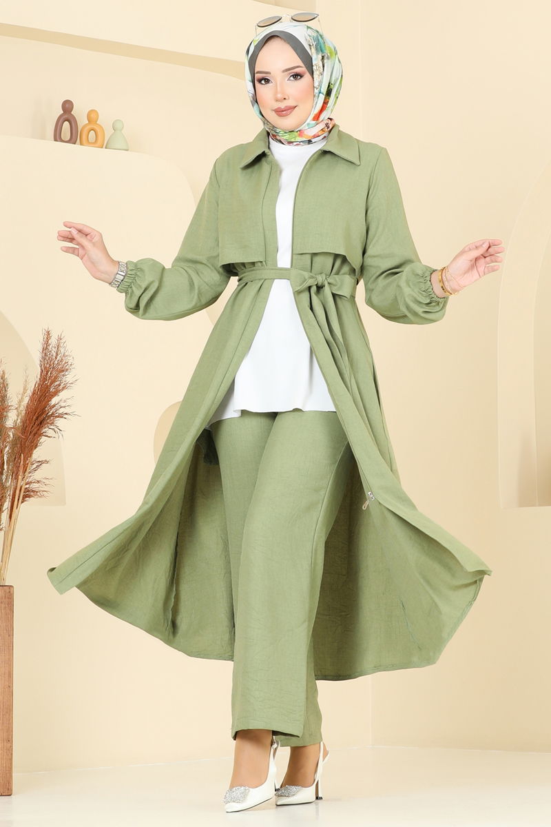 Gizli Fermuarlı Tesettür Takım 2692SL432-MS Çağla