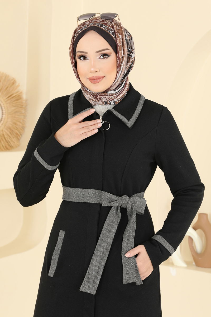 Gizli Fermuarlı Tivit Ferace ASM9167-MS Siyah