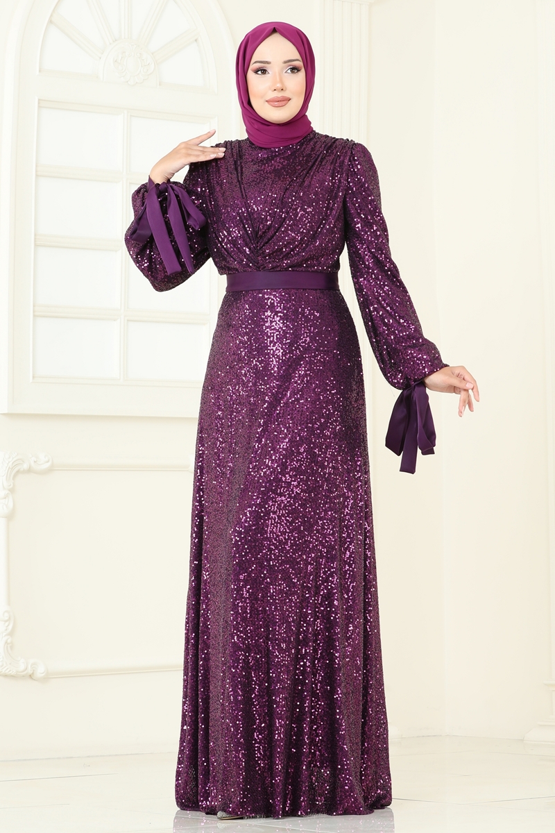 Elbise Detayları: Bu yeni sezon tasarımı, tesettür modasına uygun bir elbisedir. Ense kısmında düğmeli kapatma bulunur. Ürün hakim yaka kesimindedir ve astarlı bir yapıdadır. Arka kısmında fermuar mevcuttur. Pul payet detayları elbiseye dikilmiştir ve belinde dikişli tasarımı bulunur. Kemer elbise ile birlikte gelir ve isteğe göre çıkarılabilir. Kol uçları bağlamalıdır. Fotograflama aydınlatmasından dolayı renk tonlarında farklılık olabilir.