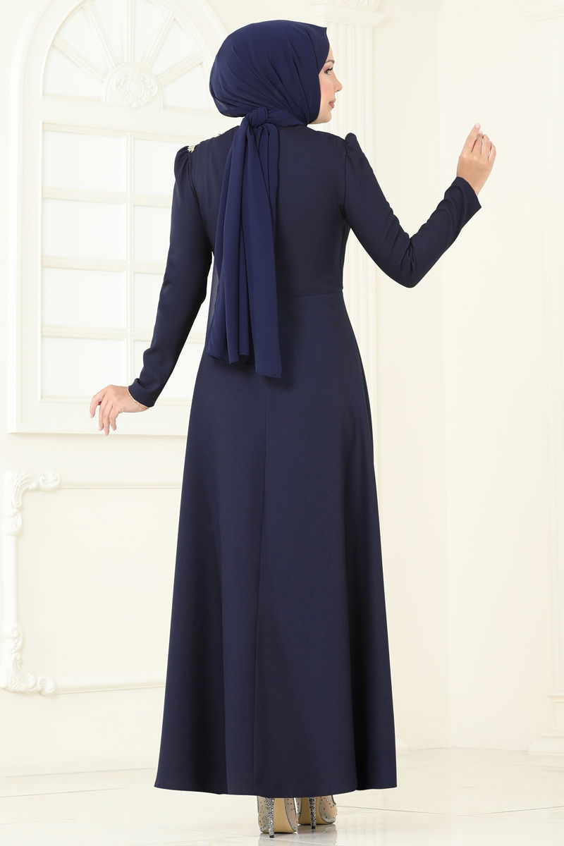 Bu özenle tasarlanmış Lacivert Gold Güpürlü Abiye Elbise, özel günlerinizi daha özel kılmak için idealdir. Krep kumaş yapısı sayesinde her mevsim tercih edebileceğiniz abiye, bisiklet yaka ve arka fermuar detayı ile modern bir görünüm sunar. Şık güpür işlemeleri ve beldeki dikiş detayları ile göz alıcı bir duruş sergiler. Temizliği kuru temizleme ile önerilen bu elbise, dolabınızdaki en gözde parçalardan biri olmaya adaydır.