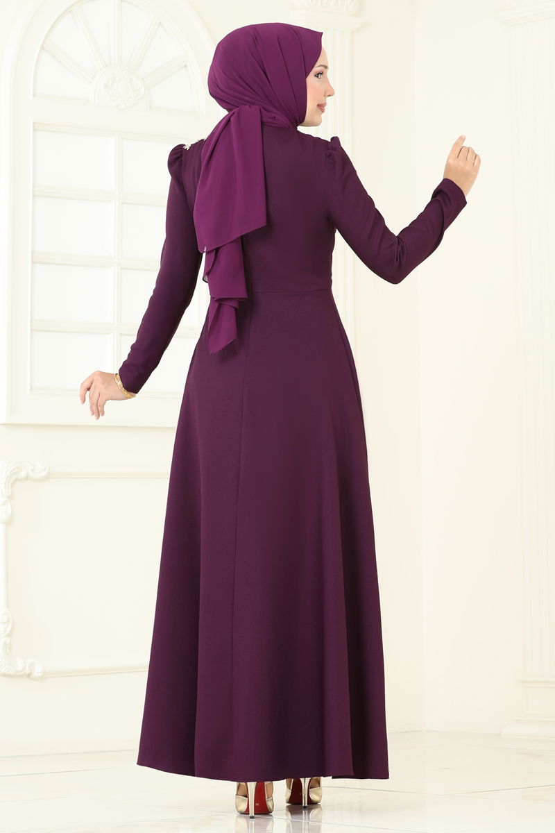 Gold Güpürlü Abiye Elbise ASM2812-MS Mürdüm