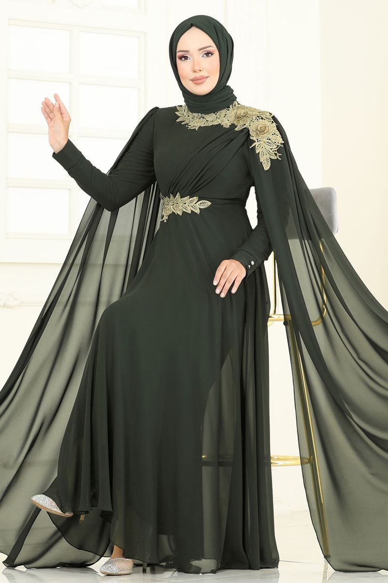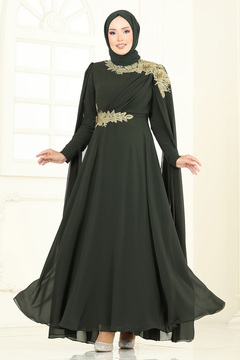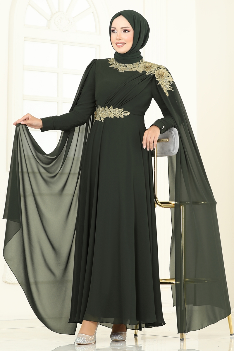 Gold Güpürlü Şifon Abiye 8023AB368-MS Haki