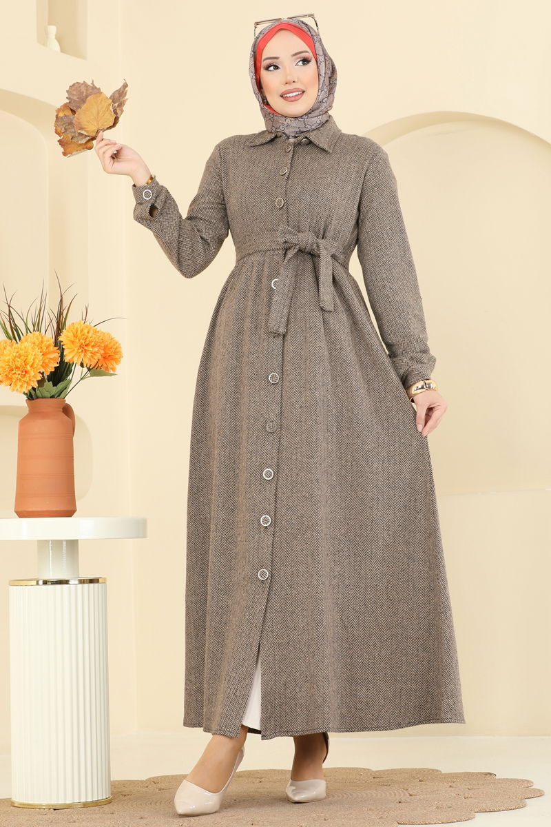 Şık Tasarımlı Gömlek Yaka Balıksırtı Tesettür Elbise