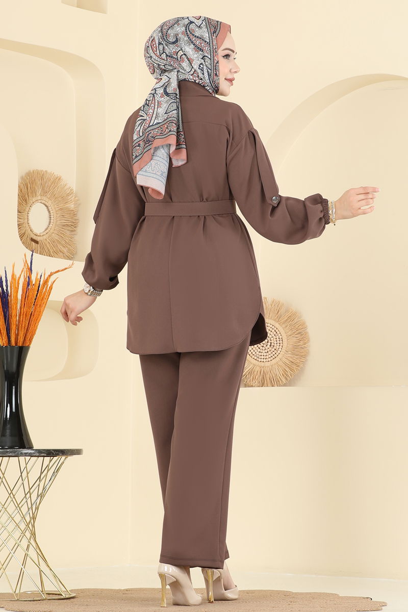 Koyu Ton Şık Takım: Gömlek Yaka ve Pantolon
