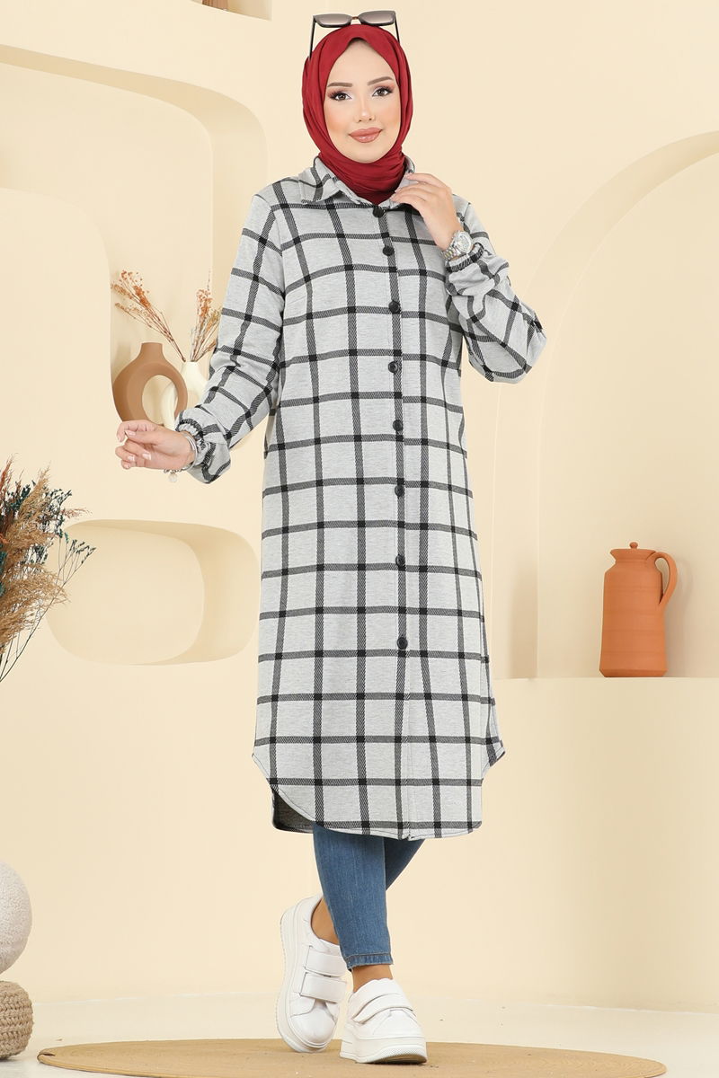 Gömlek Yaka Ekose Tunik 3062KTR750-MS Desen 4 Gri